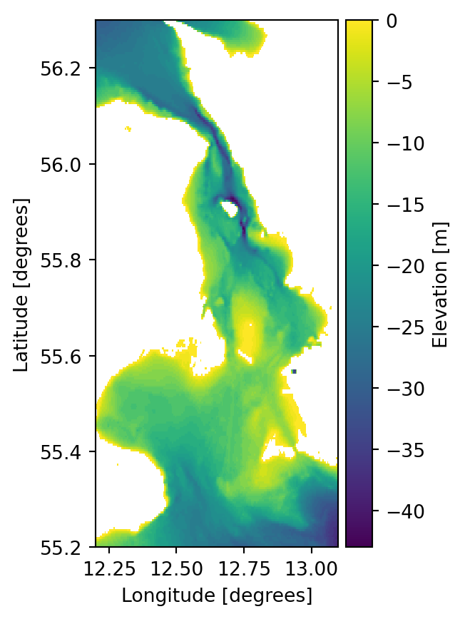 da = mikeio.read("../data/gebco_sound.dfs2")["Elevation"]